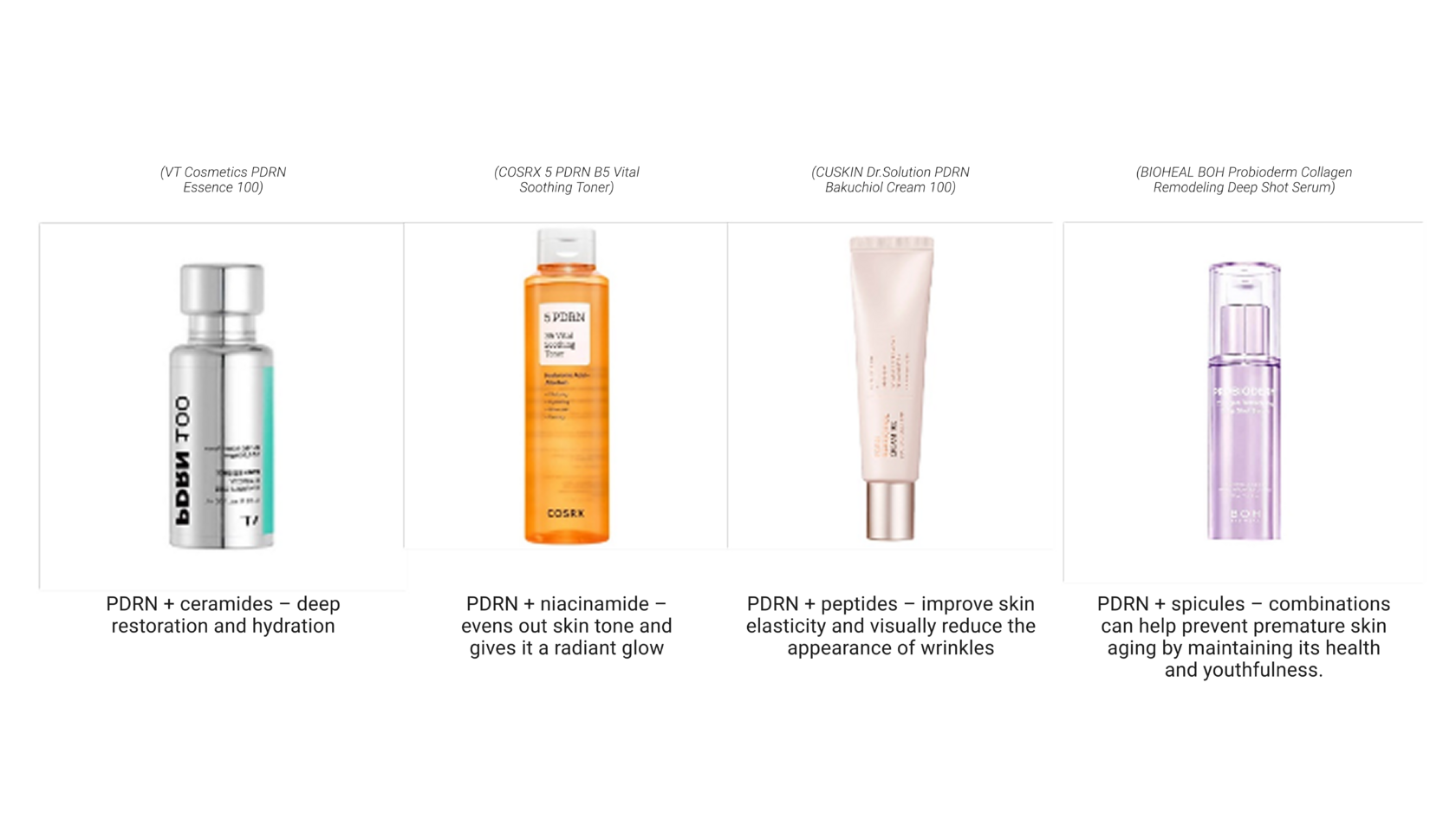 PDRN will have a more pronounced effect when combined with other powerful active ingredients (see photo).